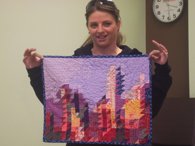 After the business was taken care of I did a little presentation on precision piecing with the help of a really bad block made by Carly (thanks for making such a terrible block, I know how mentally taxing it must have been).
