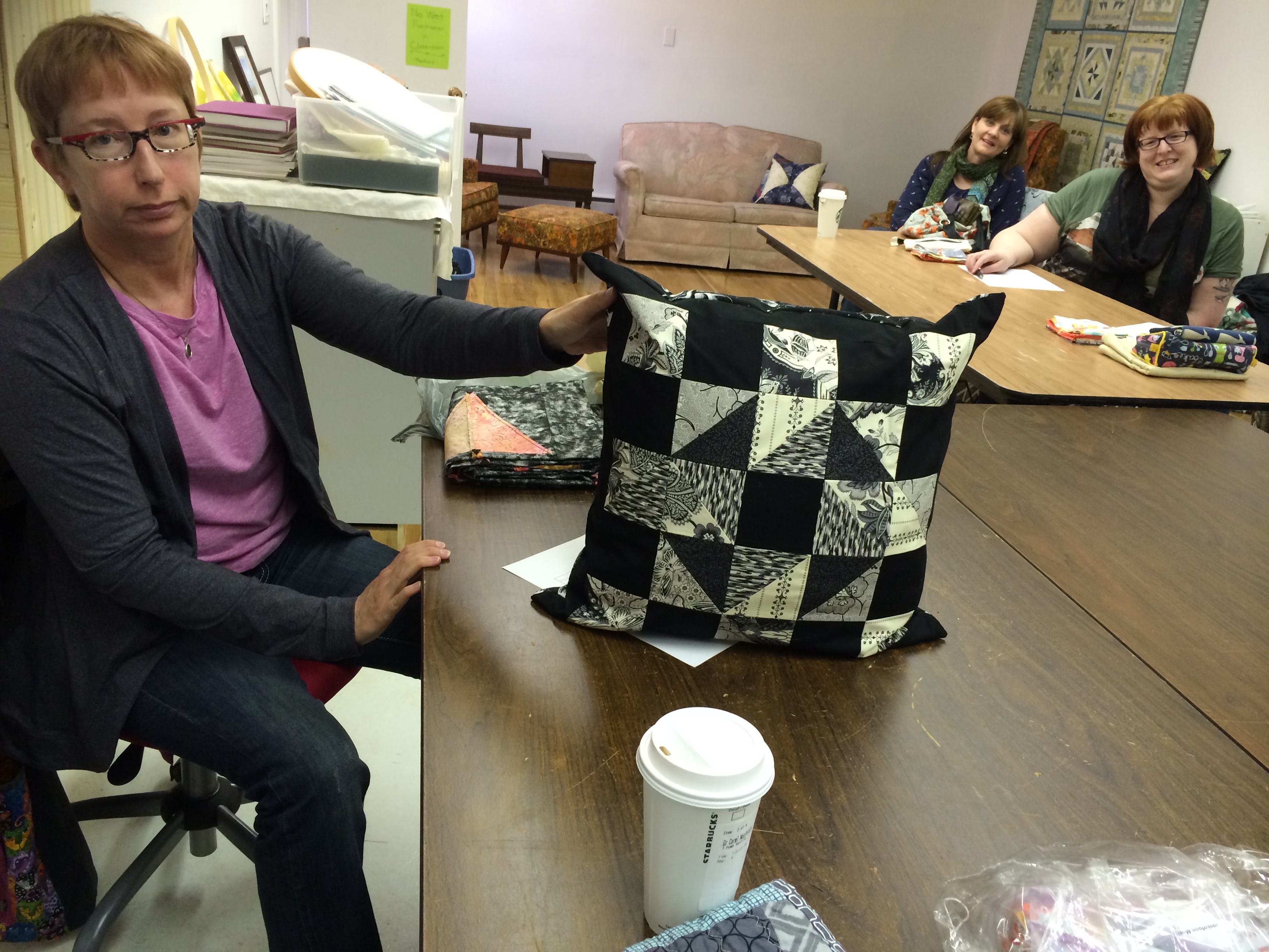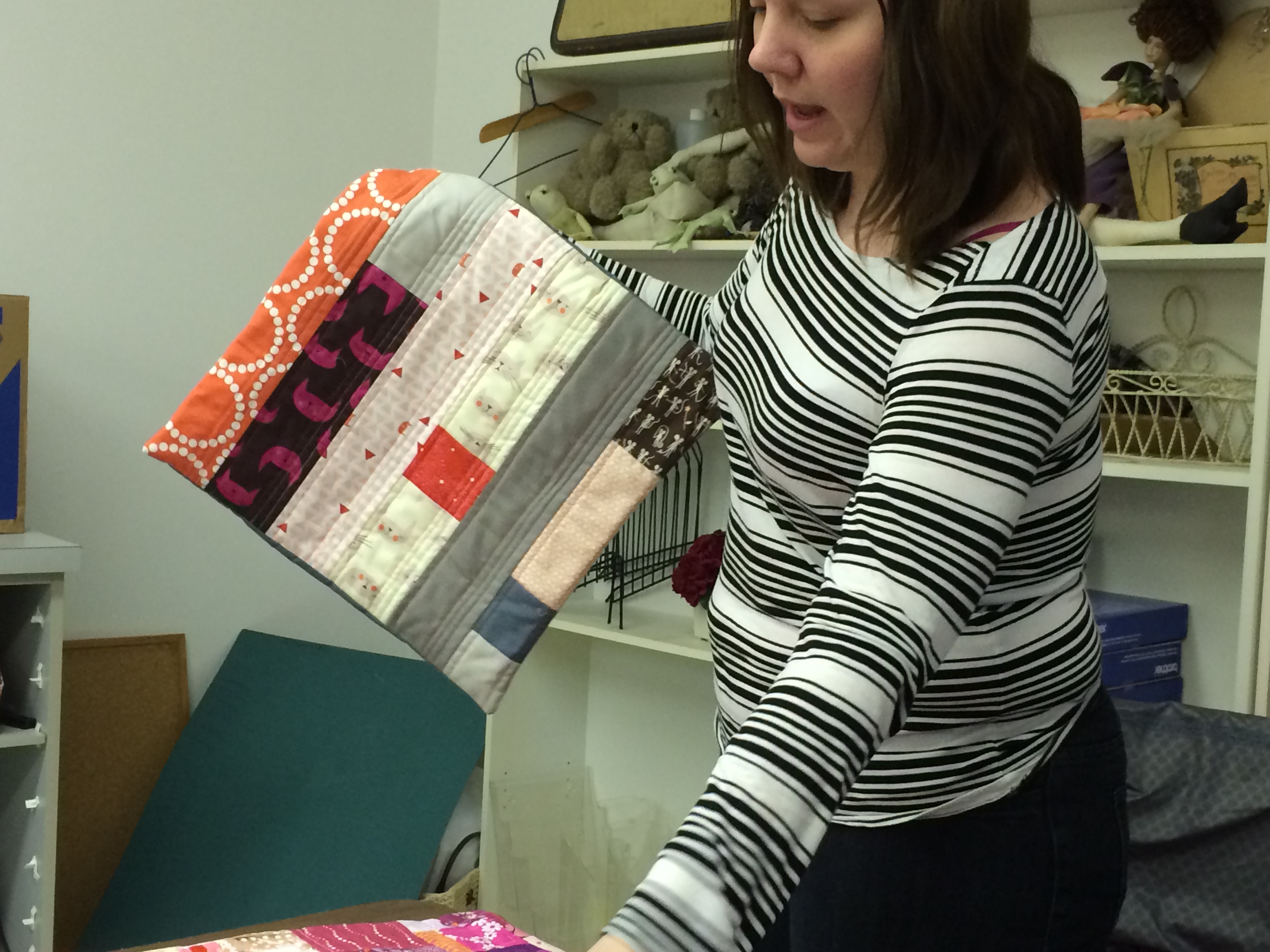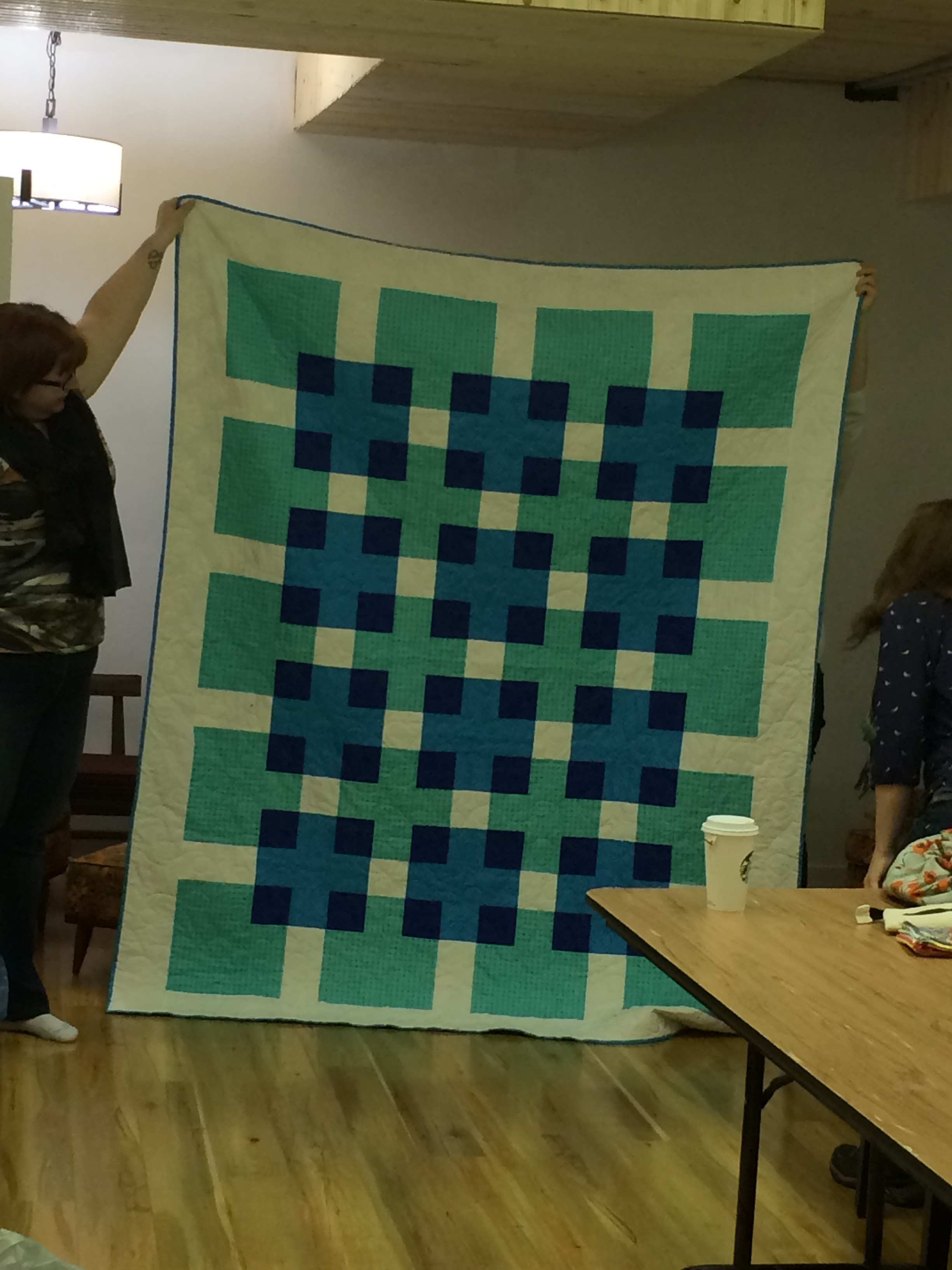 Hello! My name is Sheila, and I am thrilled (read impossibly nervous) to be guest blogging for the Saskatoon Modern Quilt Guild! I’ve “had” a blog for a year-ish now. You can find me at stitchedbysheila.wordpress.com. Truth be told – this is my VERY FIRST blog post EVER! Hence the impossible nervousness…. Since I had the camera (because who doesn’t have an iPhone these days) at our April meeting, I was nominated to make this post. Ok. I’m ready!