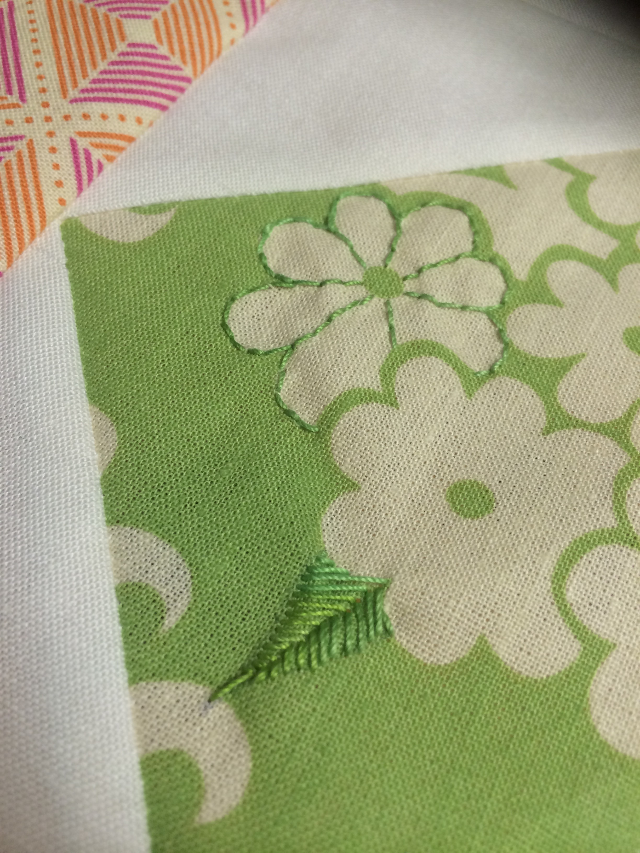 I was so impressed by all of the books and embroidered art that she brought to show and really motivated me to give it a try! I had brought the top of a cushion cover that I am making for my daughter’s bedroom, so when the hoops and thread were passed around, I got down to it! …. thirty minutes later I had a leaf! Don’t get me wrong – I love my leaf! Add this to the WIP pile and maybe I can give the finished cushion to my daughter to decorate her first apartment 😉