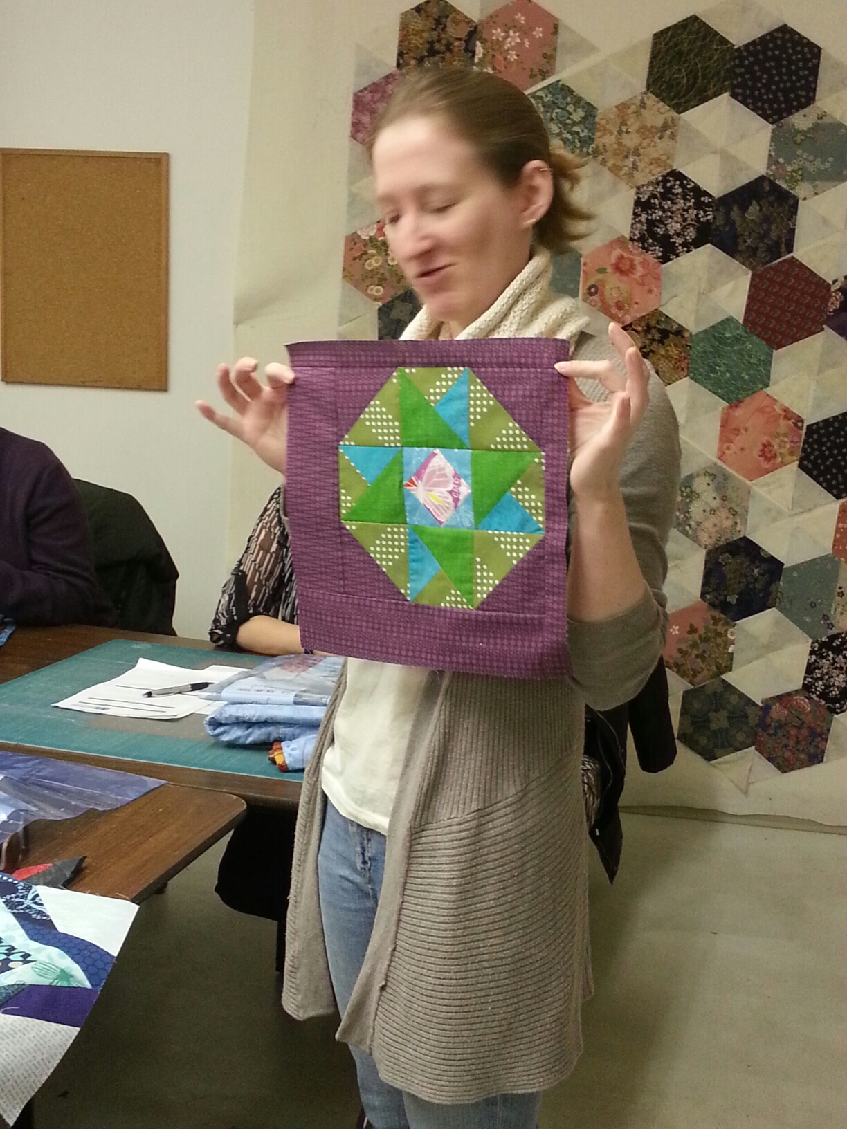 It’s been a while, but here is a recall of November’s meeting. We started with our traveling quilt trade off. Before the blocks switched hands we did a little show and tell. The blocks are looking good!