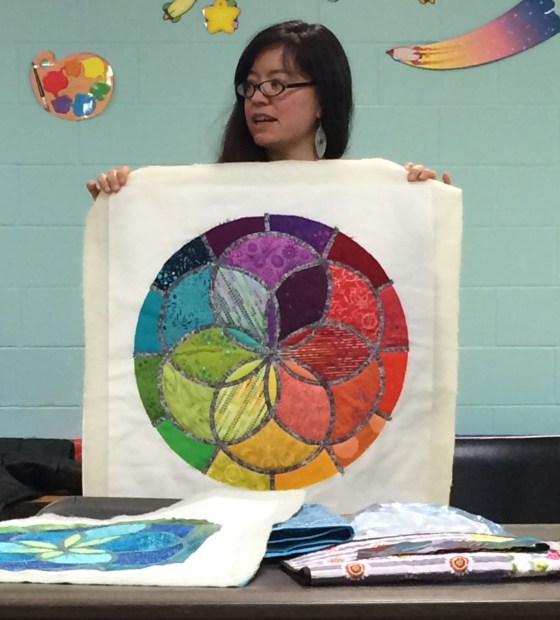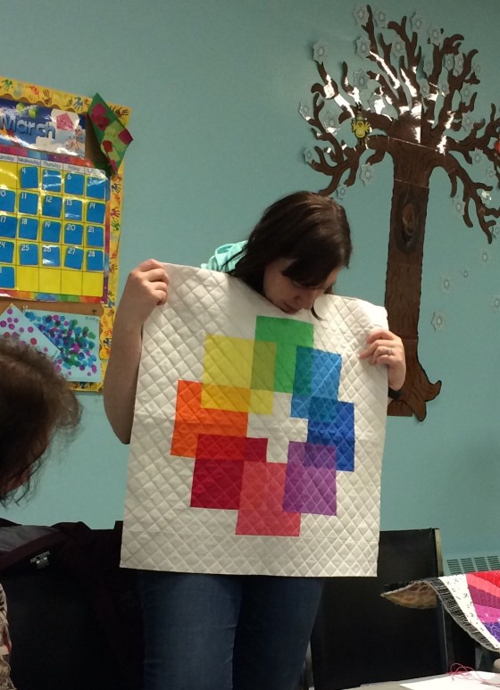 March 21 happens to be International Quilting Day. Our SMQG meeting was held on Sunday the 22nd and so we declared the celebration to be a weekend…. And brought cake! Who doesn’t love a little rainbow flying geese to celebrate this great Art?!