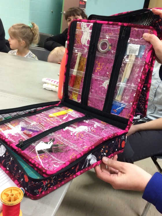 Lisa shared a lovely mini that she made for a swap and the bag that she made to take to Quilt Con! The bag literally does have a place for everything – just like its name!