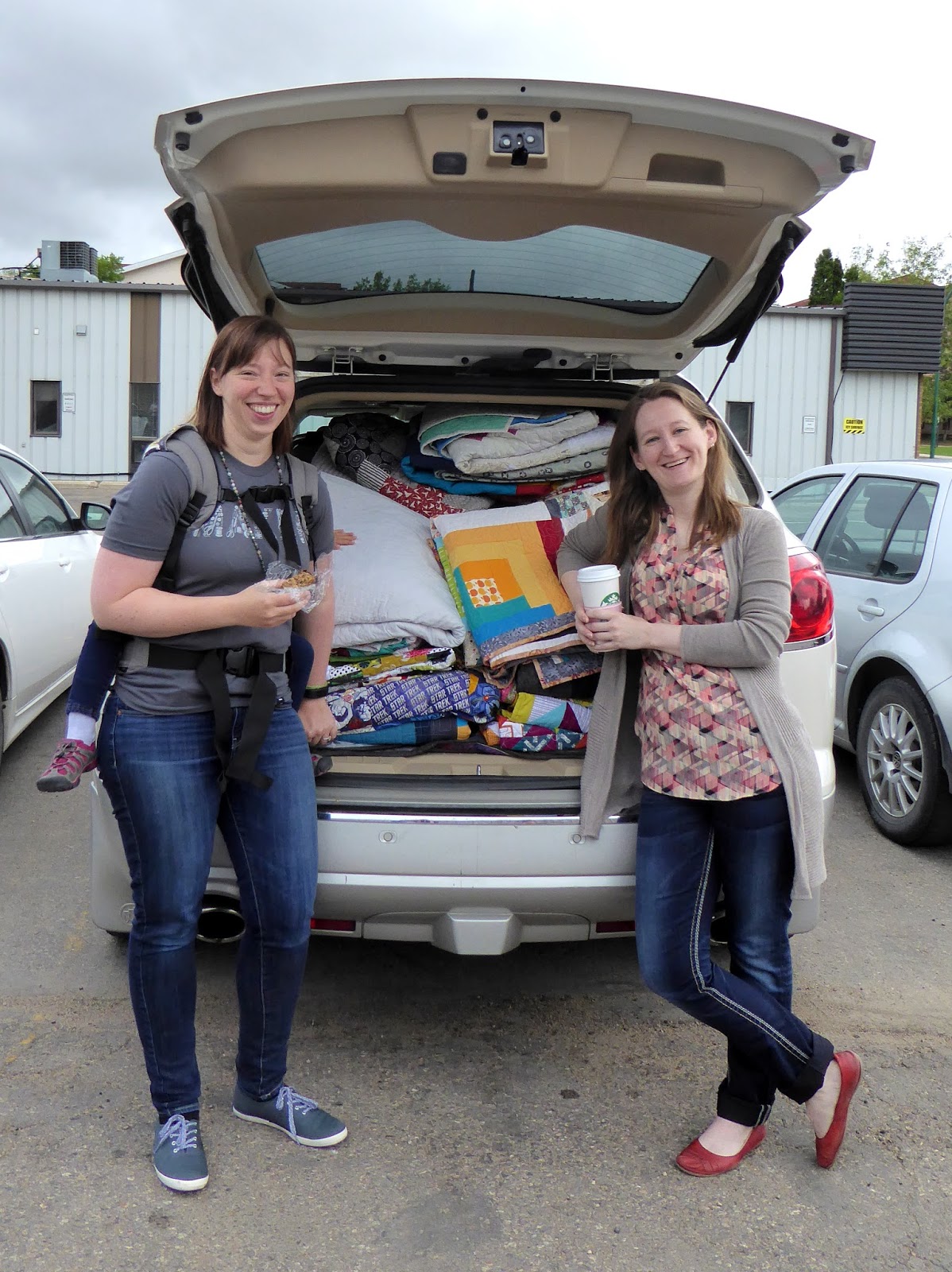 Our fearless leaders, Jaclyn and Carly, brought a van full of quilts organized and ready to hang.