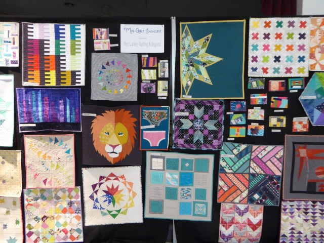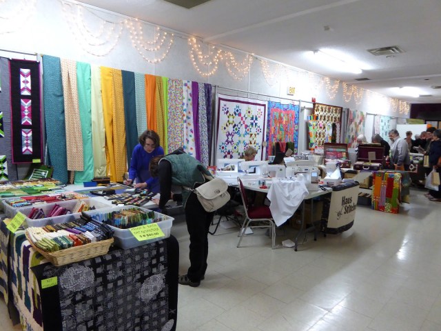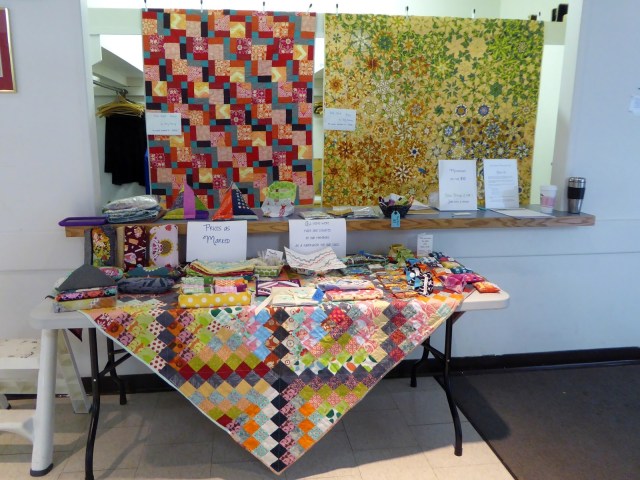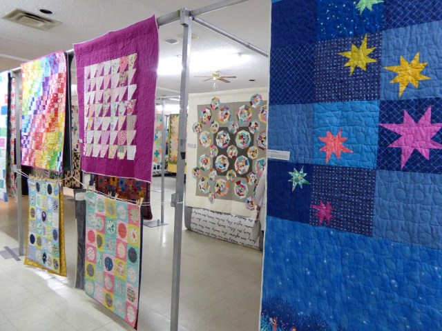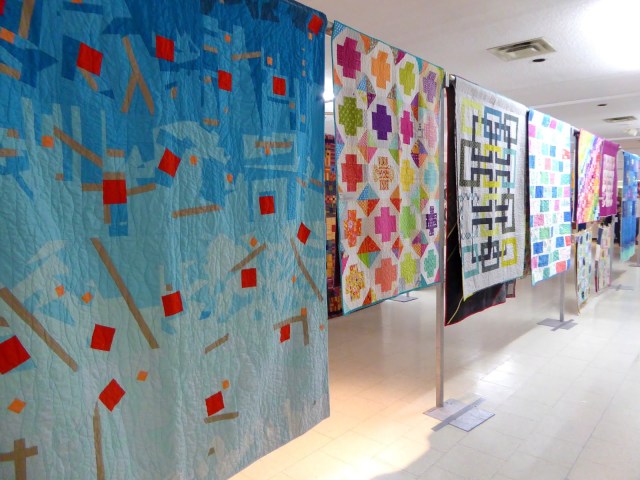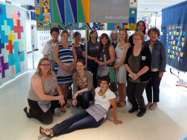 Our Saskatoon Modern Quilt Guild is so excited to have presented our first ever showcase. We called it a “showcase” instead of a “show” because it wasn’t juried and there were no prizes or categories, etc. We also had some great vendors, a concession, and members sold some of their handiwork, contributing all profits to the guild. And people really came! We are so happy with how it went!