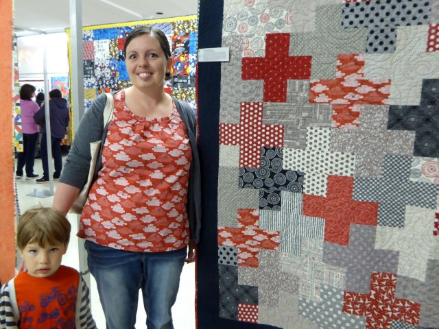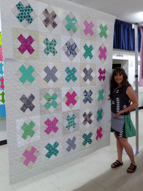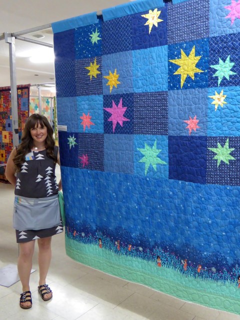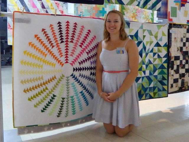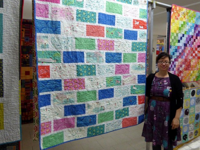 Kim and one of her quilts in the show. Look for her oh, so cute “clean and dirty underpants” mini in the photos further down.