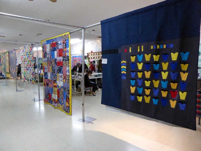 Most of us were on hand for a group photo before the doors opened. Thanks to those who made our banner! This is the first time we’ve used it. Lisa finished stitching it the night before the show. We all contributed blocks to it and various members did the brunt of the work. Nicole, in the front sitting on the floor, is our guild’s event planner and she did so much work to make this happen!