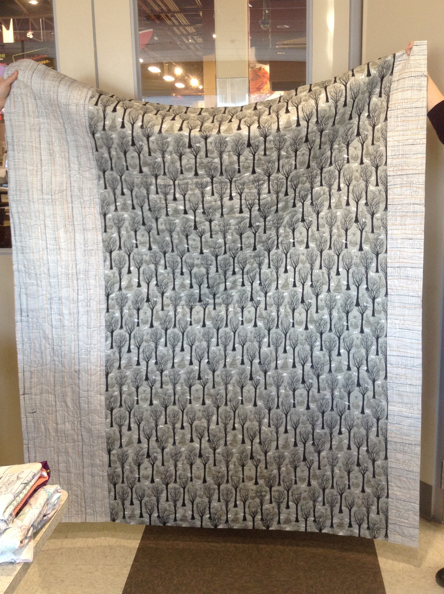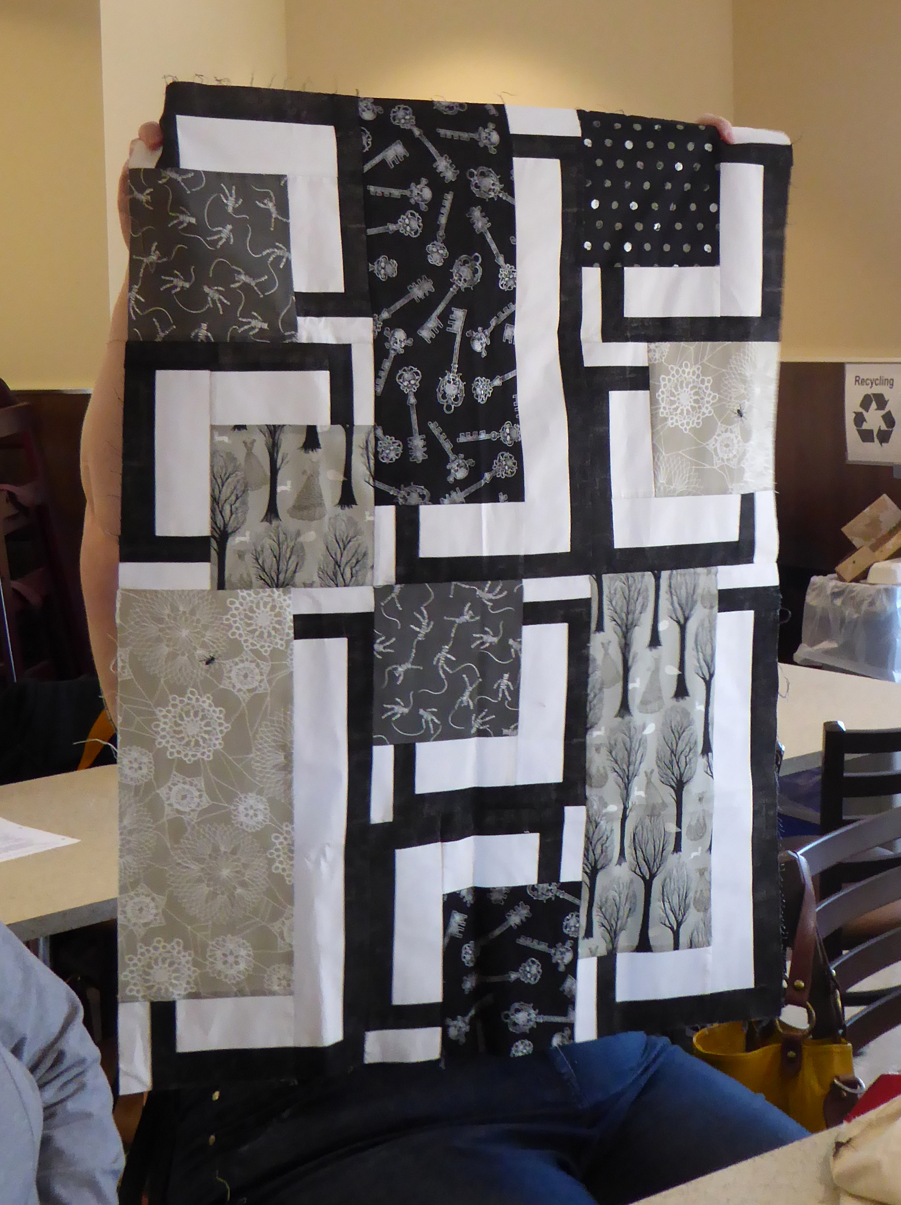 Lisa’s gold and shades of black quilt is stunning!