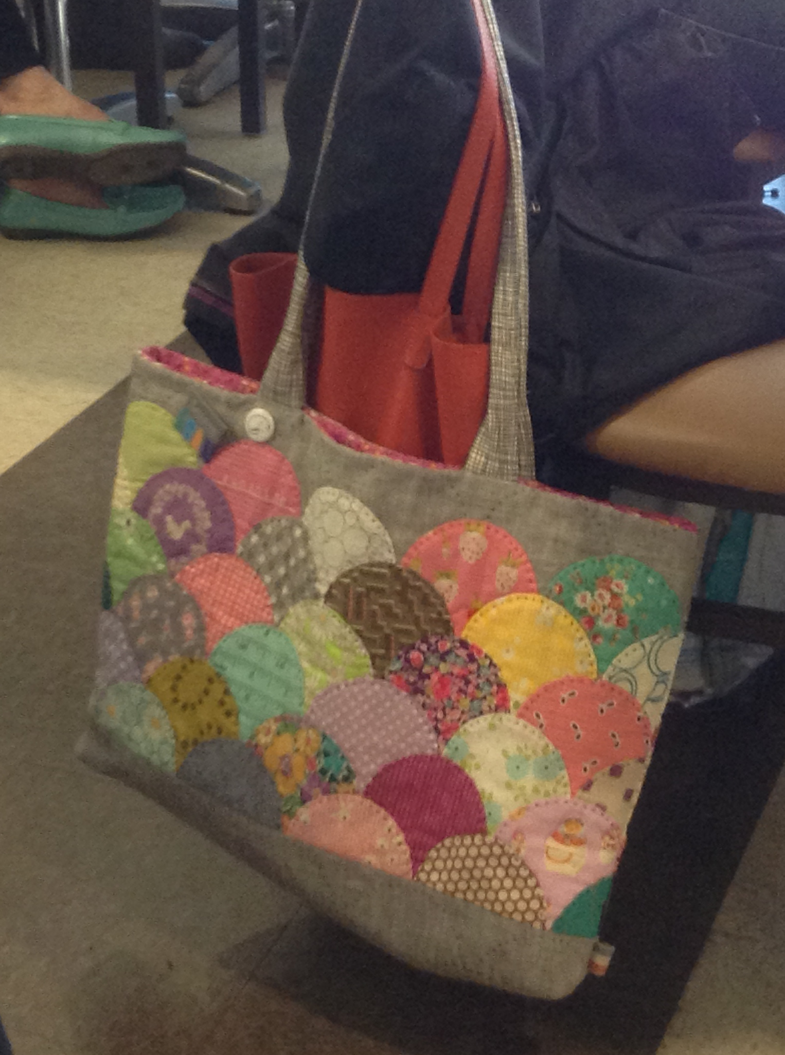 I also spotted Lisa’s clamshell tote. I can’t remember if she made this one or if someone made it for her.