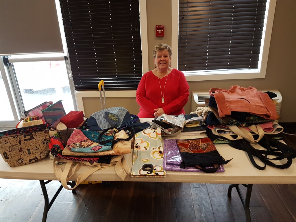 We ended 2019, and started 2020, with sew days at Stonebridge Home Inn & Suites. In January, we hosted a guest at our 2 p.m. meeting. Linda Seemann-Korte brought bags she has made and described their construction and patterns. We received so many tips, such as suggestions for linings, types of waxed and unwaxed canvases, and different types of handles and straps. It was inspirational to see so many bags as these are a practical item to test out the decorative stitches on our sewing machines. One tip that was new to most of us was to use a continuous zipper. This was a very informative and enjoyable presentation. Linda was a great speaker. Thanks Linda!