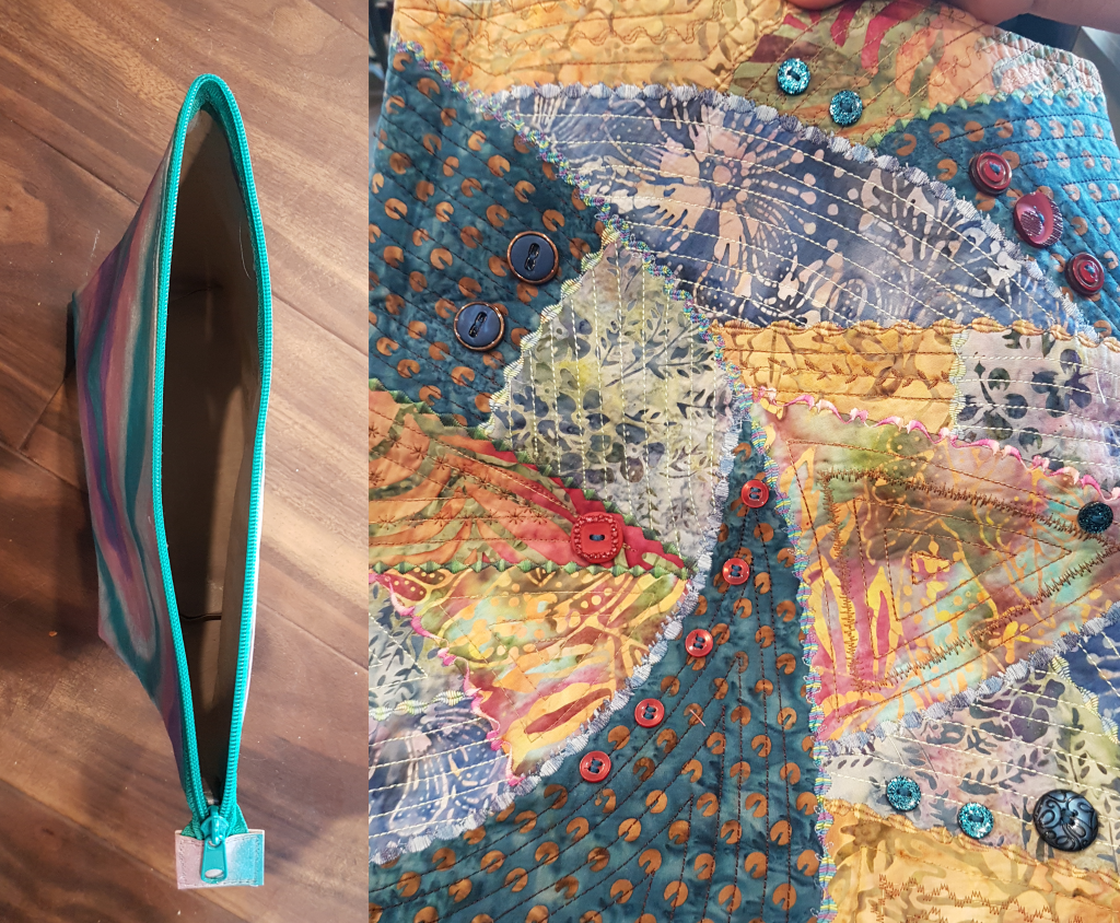 Continuous zipper (left), embellishments and decorative stitches (right)