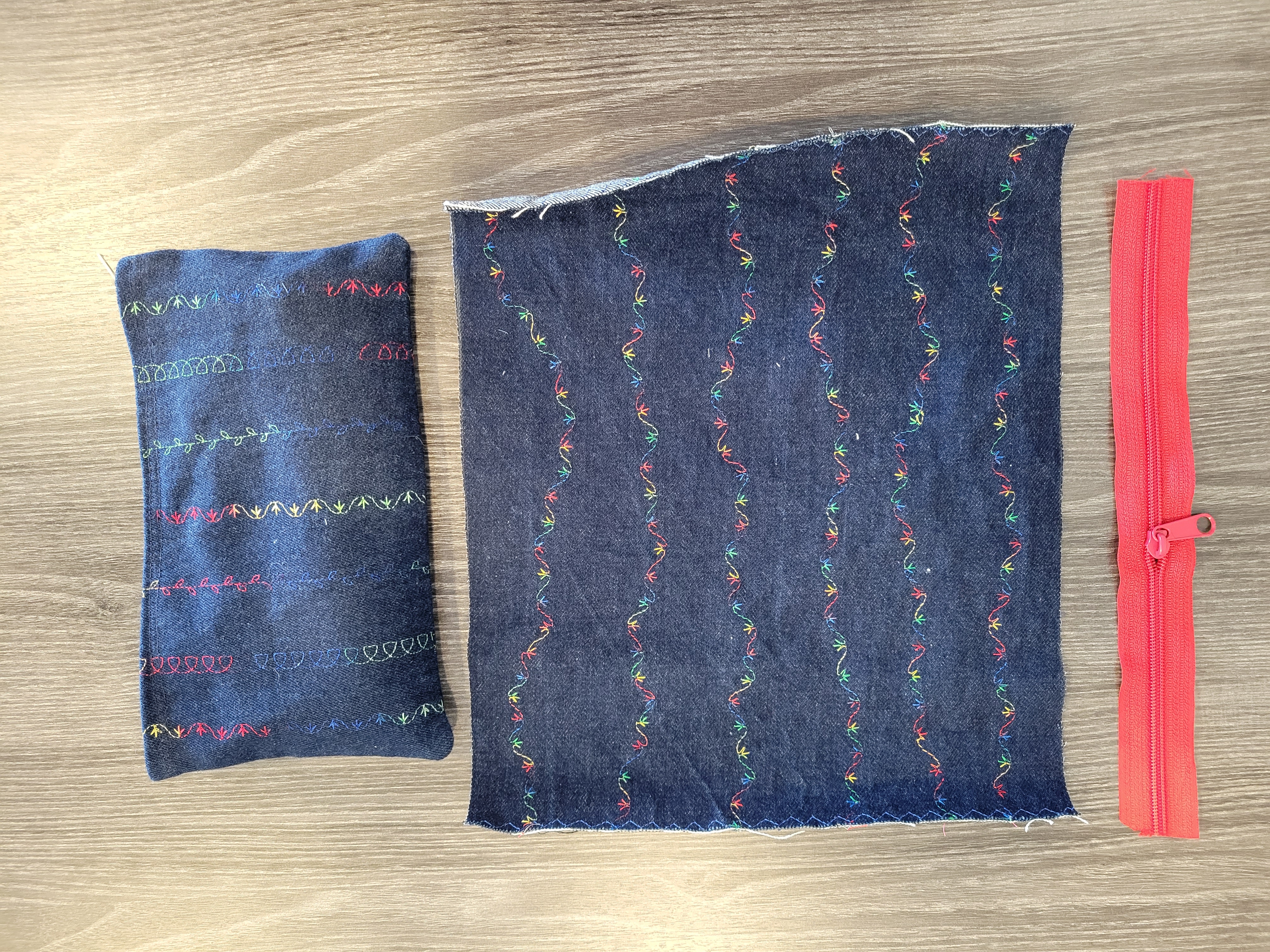 We started with fabric and zippers, and soon after we had the 5 bags shown in the 2nd photo. Jean fabric is so much fun as a background for testing all of the decorative stitches on our machines. Linda has donated the bag she made for a prize at our retreat next month! Bag patterns discussed included the L.A. Pouch by Elle Puls which can be purchased on makerist.com. Also, Shari has been busy over the past couple of months making several bags (photo right) and patterns she has used are by Blue Calla, Sew Sweetness, and Bagstock Designs.
