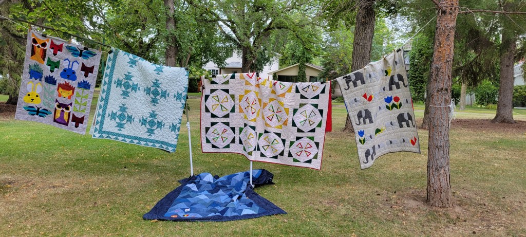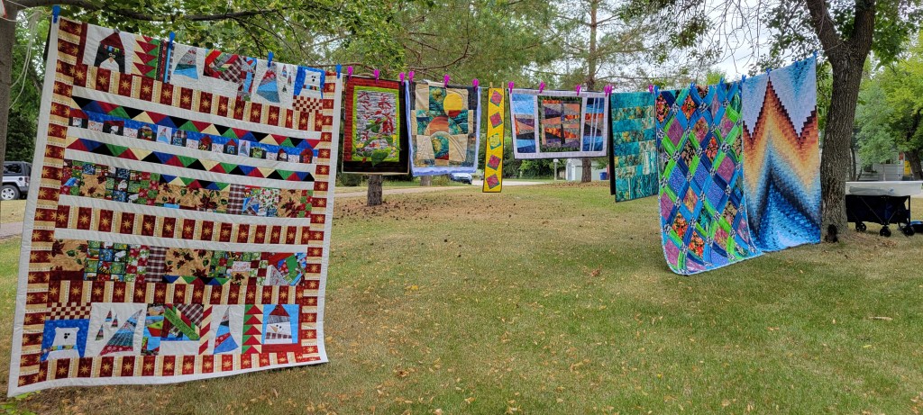 The Saskatoon Modern Quilt Guild risked the weather and ended up with another wonderful Quilts in the Park event on Sunday, August 28, 2022 from 2 to 4 p.m. in Buena Vista Park (1300 block of Melrose Avenue). Please check out some of this eye candy.