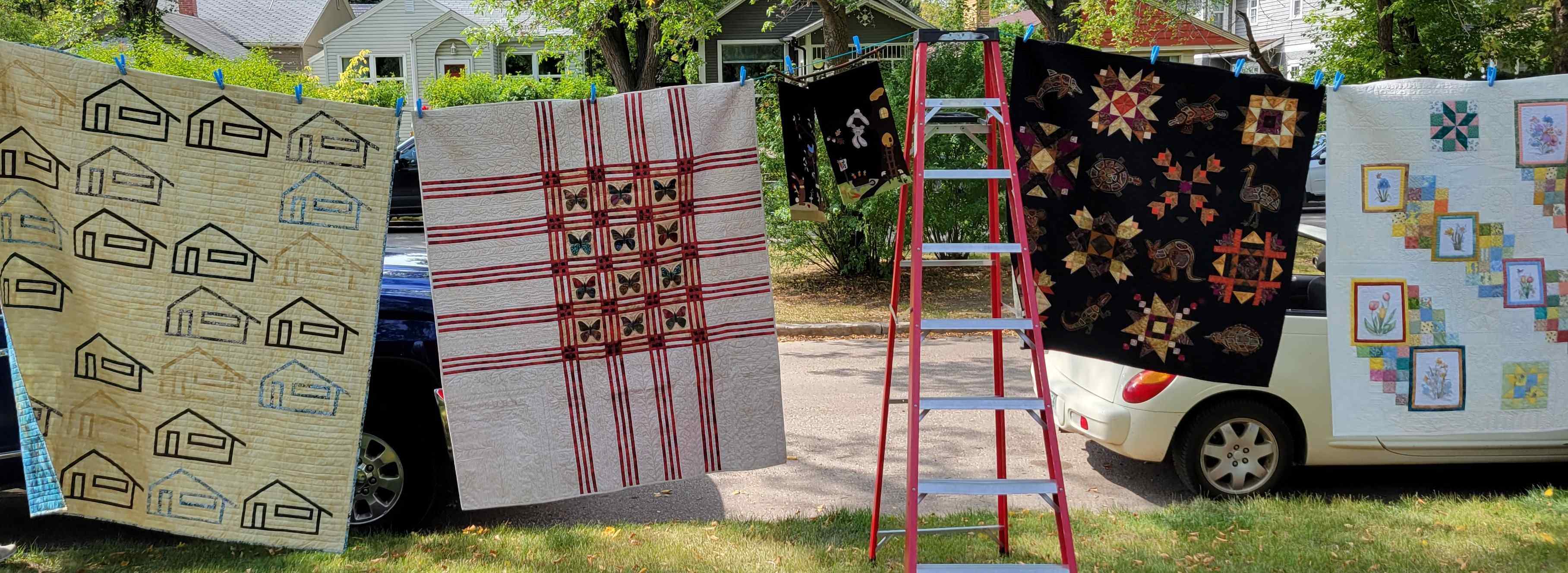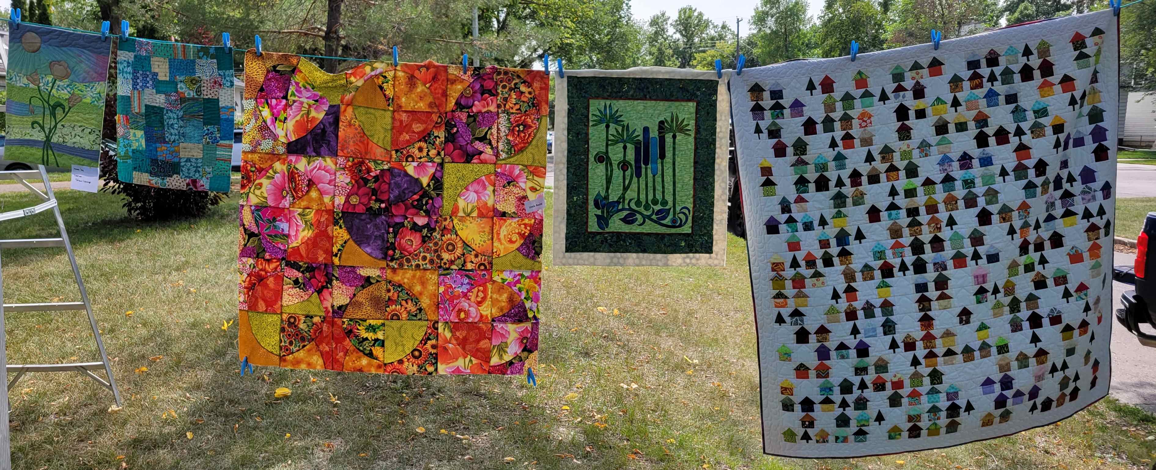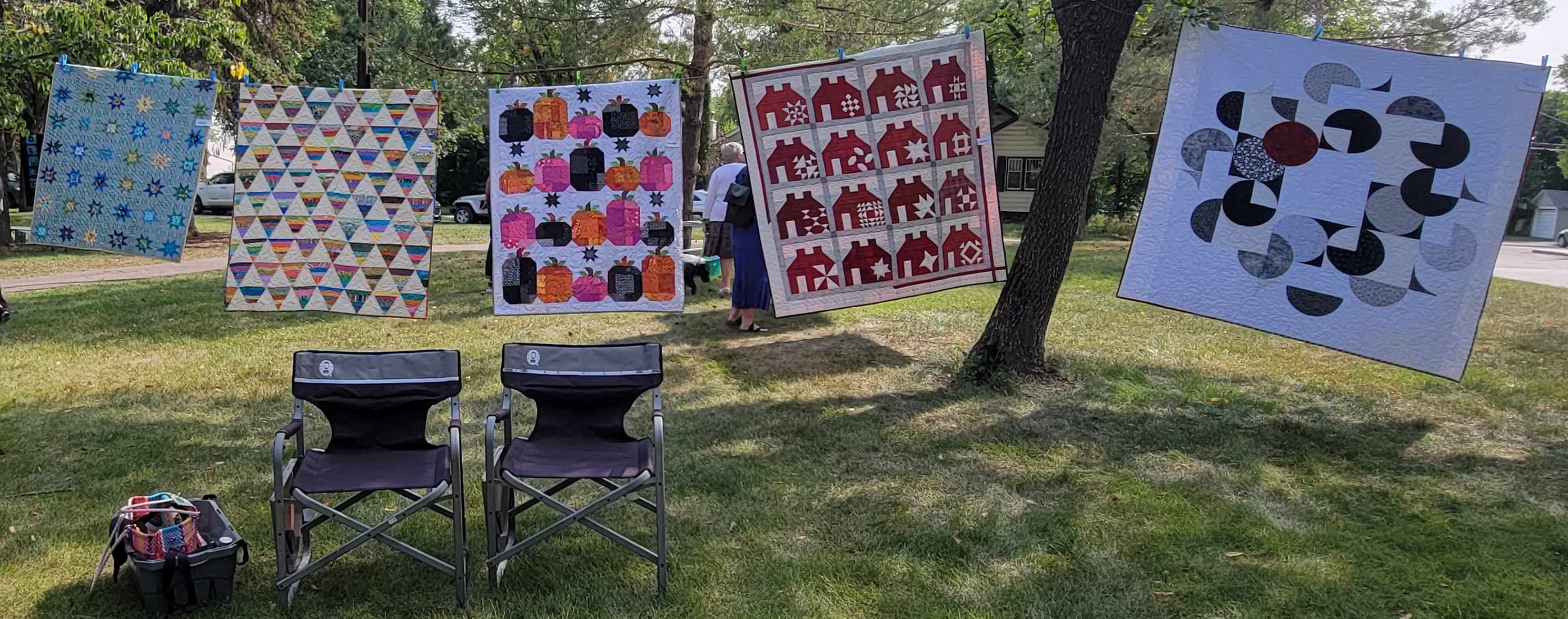 The Saskatoon MQG met on August 20th in Buena Vista park for our 4th annual quilt show. It was very casual. We hung our quilts between trees and chatted with our visitors. The weather was absolutely perfect. If you were able to join us, thank you for coming out.