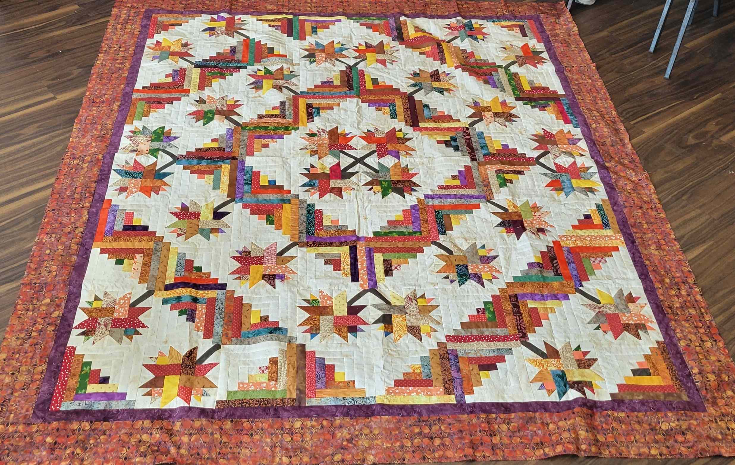 The Saskatoon MQG gathered on May 26 for a sew day at Home Inn & Suites in Stonebridge. We started with the icebreaker asking for safety tips for quilters. Unfortunately, some lessons learned were the hard way. Check out the list and see if you can improve your sewing safety: buy a glove to protect your hands with rotary cutter, don’t put pins in your mouth, use a thimble before the needle goes through your finger, use thimble protectors on other fingers for pushing, hold onto the seat of a rolling chair before you sit down, close your rotary cutter when not in use, put your tools away, declutter your space to avoid tripping hazards, pay attention when piecing so you don’t sew your finger with the machine, always know where your pin cushion is and use it, keep a sharps container close for disposing of bent pins, use a rolling chair with 5 legs and not 4, stop sewing before your joint pain gets intolerable, wear shoes so that you don’t cut your feet if you drop a blade, consider ergonomics for the sewing machine table height and chair, stay hydrated (preferably with water and not the other w**** beverage), get up and walk to the ironing and cutting board so motions aren’t too repetitive, clean threads off floor so they don’t gum up the wheels on your chair, keep electric cords against walls so they aren’t tripping hazards or so they don’t get wound up in your chair wheels, use power bar surge protector on your equipment and replace if worn or damaged, have a tide pen on hand for blood stains on fabric, get irons with automatic shutoffs and remember to unplug them when you are done, and cover magnifying glasses so the sun doesn’t start a fire.