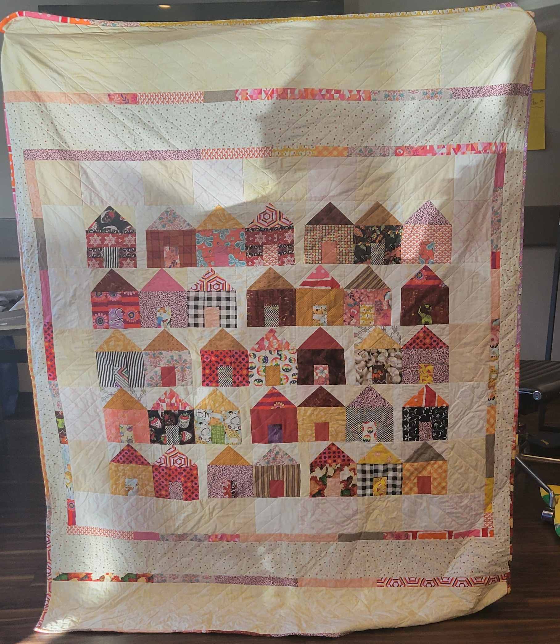 • When working with squares, you can eyeball the lines or stitch in the ditch, then cross-hatch over them.