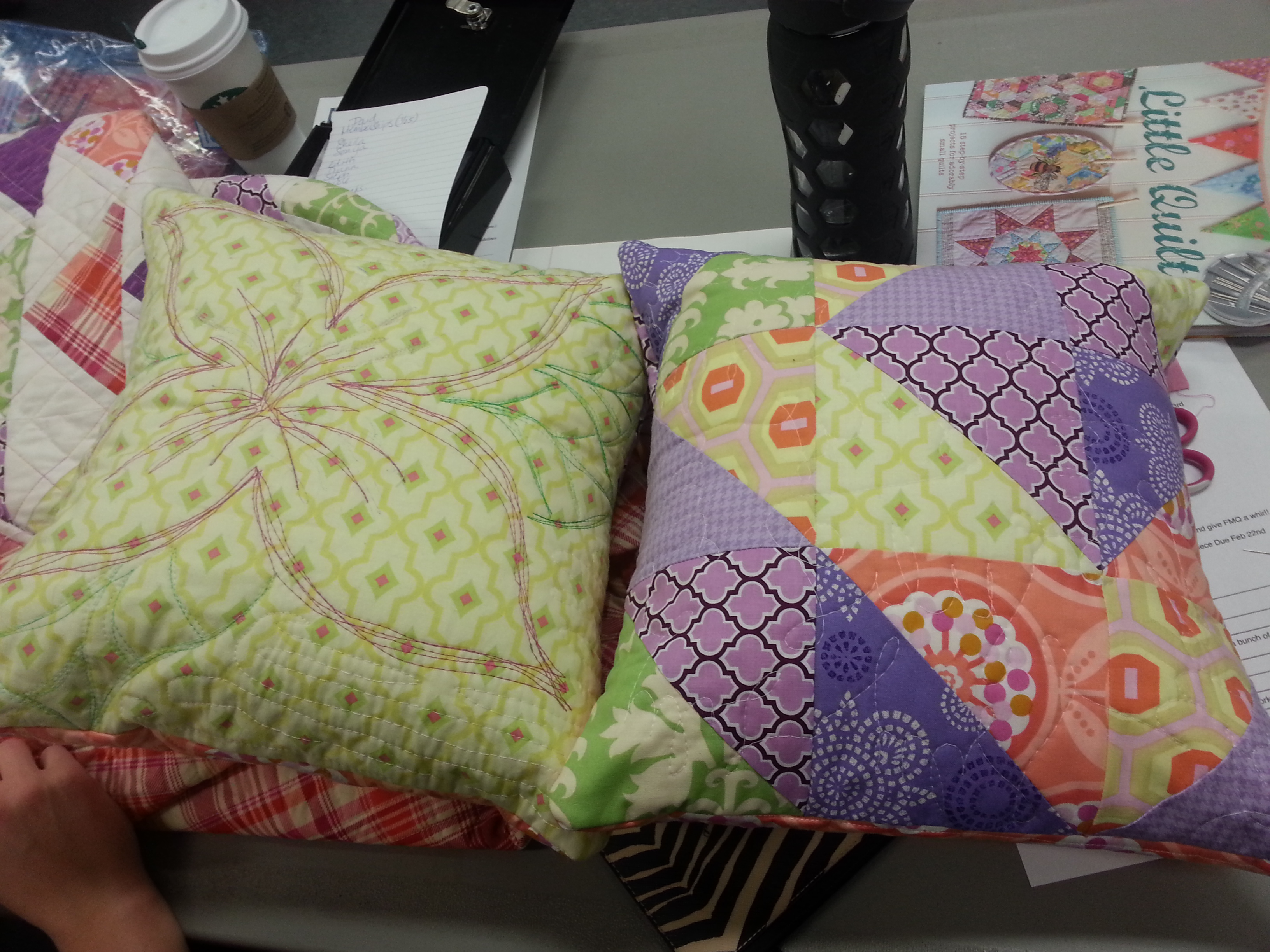 We got right into the traveling quilts. I had Jaclyn’s season-themed quilt and made a circle of hearts and a heart arrow for it.