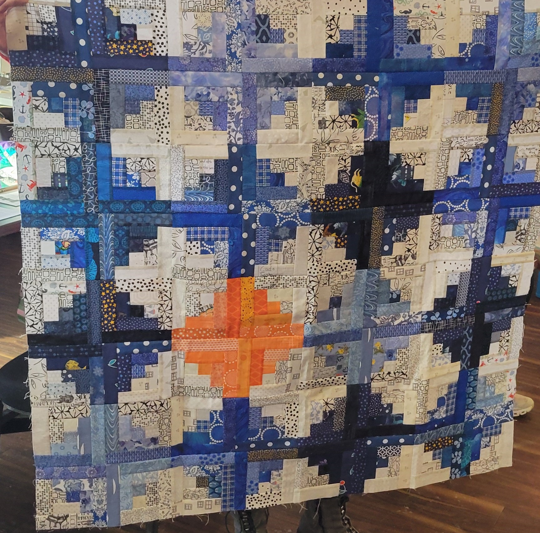 - Block Lotto for April 27: Make a modern improv block using solid black, solid white, and one additional solid color. The block size should be 10.5 inches square. If you weren’t at the meeting to draw a block name from Laura’s cute bag, you can pick one next month or choose any traditional block you’d like to make modern.